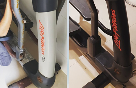 Restauração de aparelhos de musculação com pintura eletrostática e acabamento original de fábrica